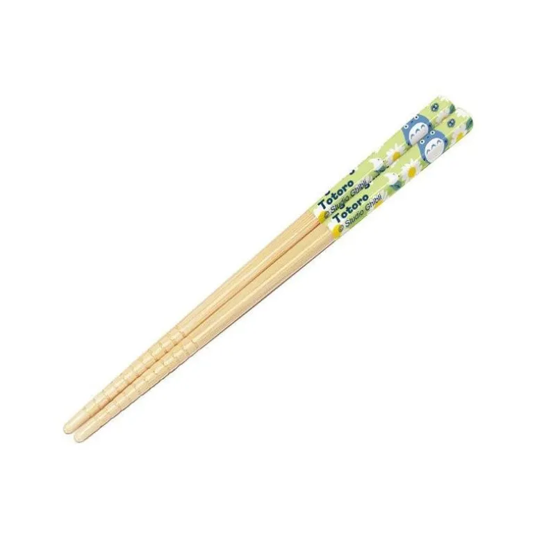 Un set de palillos de bambú para comer de 17 cm y con un diseño que homenajea a una de las más icónicas películas de Hayao Miyazaki, Mi Vecino Totoro.