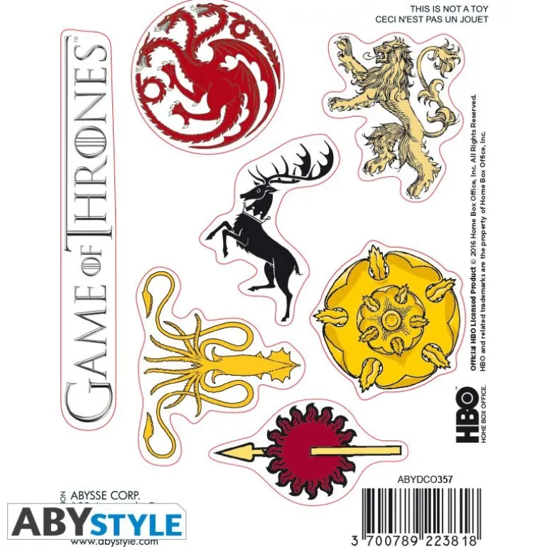 El set de pegatinas tiene unas medidas de 16×11 cm y está impreso y diseñado por el prestigioso fabricante francés AbyStyle bajo licencia de HBO.
