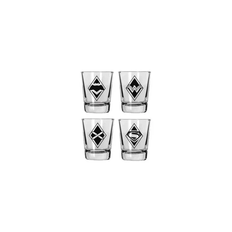 Set de 4 vasos de chupito de los logos de los personajes de la película ‘Batman v Superman‘. Estos cuatro vasos incluyen los logos de Batman, Superman, Wonder Woman y Lex Luthor. Tú decides con cual de ellos quieres beber.