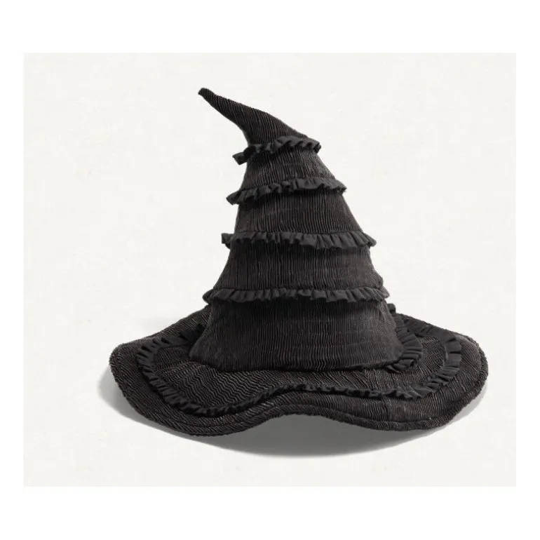 Descubre el sombrero de Elphaba de Wicked, una pieza única con licencia oficial perfecta para todos los admiradores del icónico musical. Este sombrero está diseñado con una estructura cónica distintiva, adornada con varios volantes y detalles que le añaden un toque auténtico y mágico. Su color negro profundo evoca el misterio y el encanto del personaje, haciendo de este accesorio una adición imprescindible para cualquier colección de productos de cine.