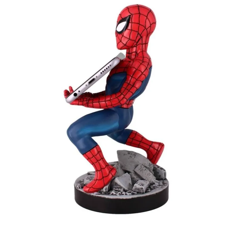 Este soporte Cable Guy de Spider-Man es el accesorio ideal para cualquier fan de Marvel. Con una altura de 20 cm, este impresionante soporte está diseñado para sostener y cargar mandos de videoconsolas, como el DualShock 4 y el Xbox One Wireless Controller, además de teléfonos móviles. Fabricado por Exquisite Gaming, cuenta con licencia oficial, garantizando su calidad y autenticidad.