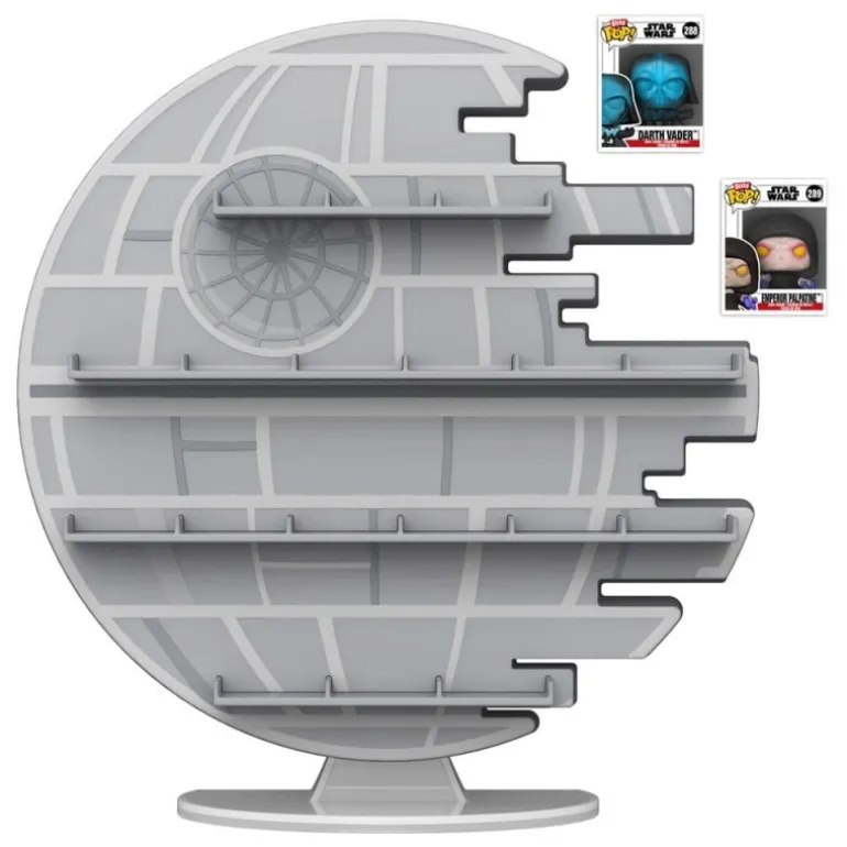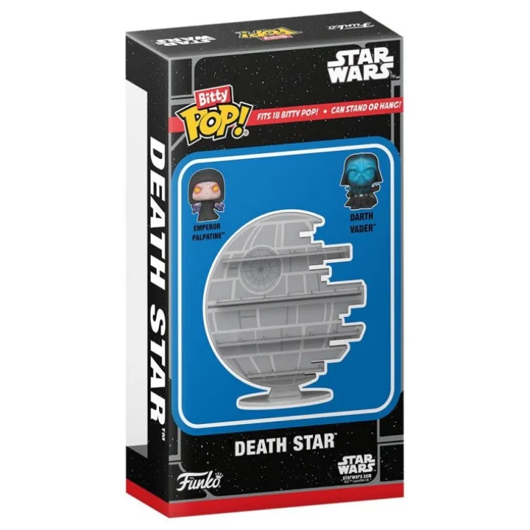 El expositor Bitty POP! de Star Wars presenta una detallada réplica de la icónica Estrella de la Muerte, con espacio para exhibir hasta 20 figuras Bitty POP! Con sus dimensiones de 23,1 x 40,9 x 11,2 cm, este colección de Funko es una obra maestra en miniatura. Incluye las figuras exclusivas de Emperador Palpatine y Darth Vader electrificado.