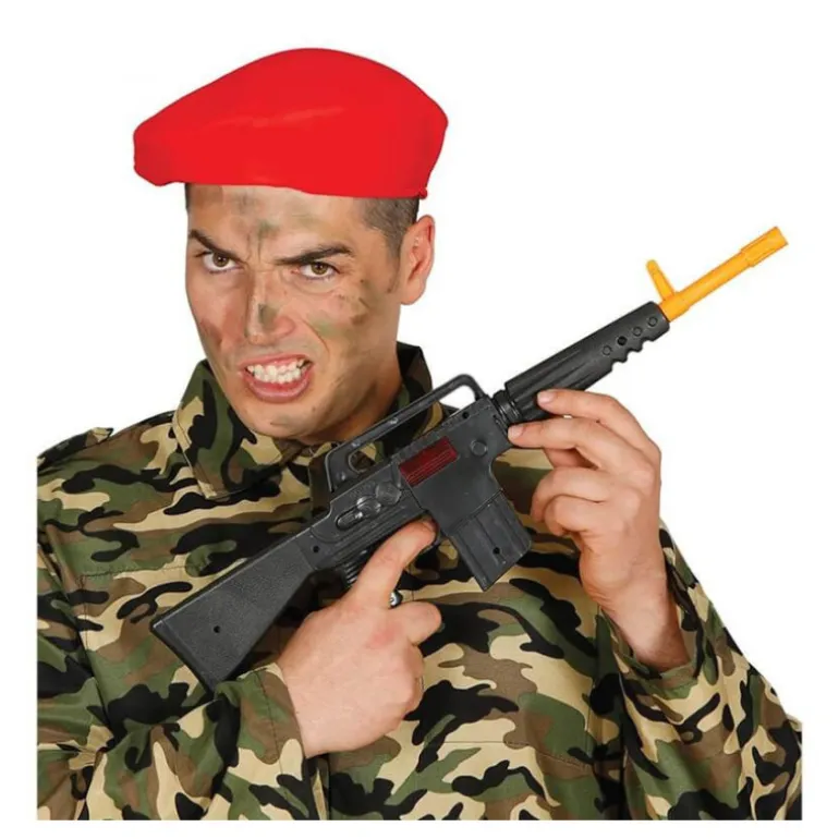 Subfusil M-16, metralleta o ametralladora, mide 52 cm. Complemento perfecto para que lo acompañes con nuestros disfraces de soldado, militar, guerrero, etc….Es una de las armas de fuego moderna más preferidas por los soldados. ¡En tenemos todo lo que necesitas para tus fiestas, eventos y celebraciones!