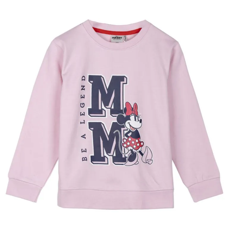 Esta encantadora sudadera para niñas presenta un diseño en color rosa suave, adornado con una ilustración de Minnie Mouse. La impresión en el frente muestra a Minnie con su característico lazo rojo, flanqueada por las letras «MM» en un estilo llamativo y el texto «Be a Legend», haciendo de esta prenda una pieza moderna y divertida para los pequeños seguidores de Disney.