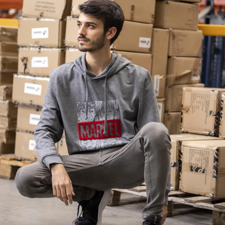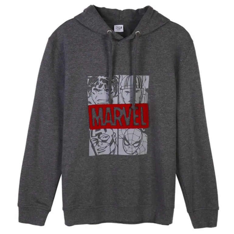 Es una sudadera con capucha y bolsillo canguro, de esas que le quedan bien a todo el mundo. Pero lo mejor es su genial diseño en una perfecta combinación de colores gris, blanco y rojo, con el conocido logo de Marvel en el pecho.