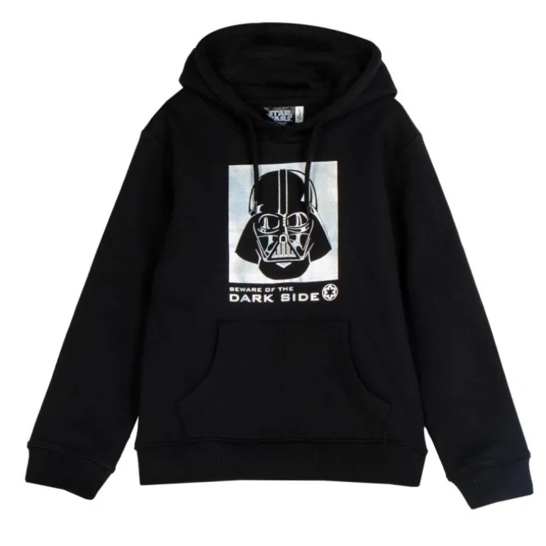 Descubre la sudadera perfecta para los jóvenes seguidores de la saga Star Wars. Esta sudadera negra, diseñada especialmente para niños de 8 a 14 años, presenta un llamativo estampado del icónico Darth Vader con la frase «Beware of the Dark Side».