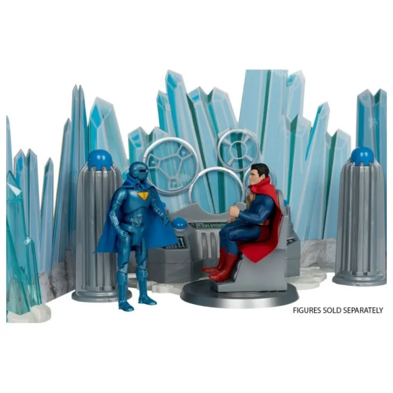 El set incluye detallados terminales kryptonianos, cristales resplandecientes que simulan los hielos del Ártico, una cómoda silla, una consola central tecnológica, y un telón de fondo kryptoniano que completan el escenario. Cada pieza está meticulosamente diseñada para reflejar el estilo visual de la película, creando una experiencia inmersiva para los coleccionistas.