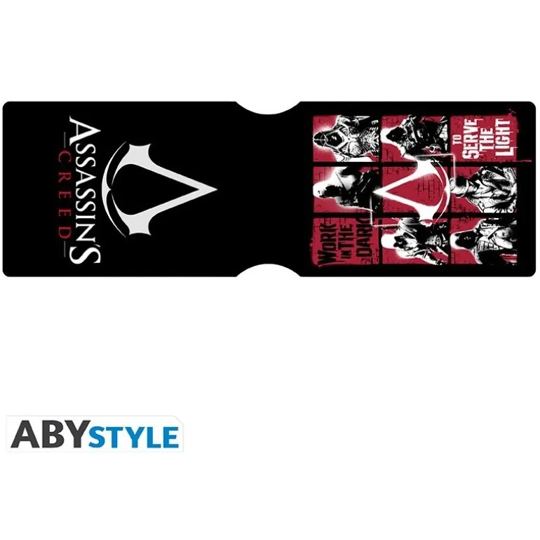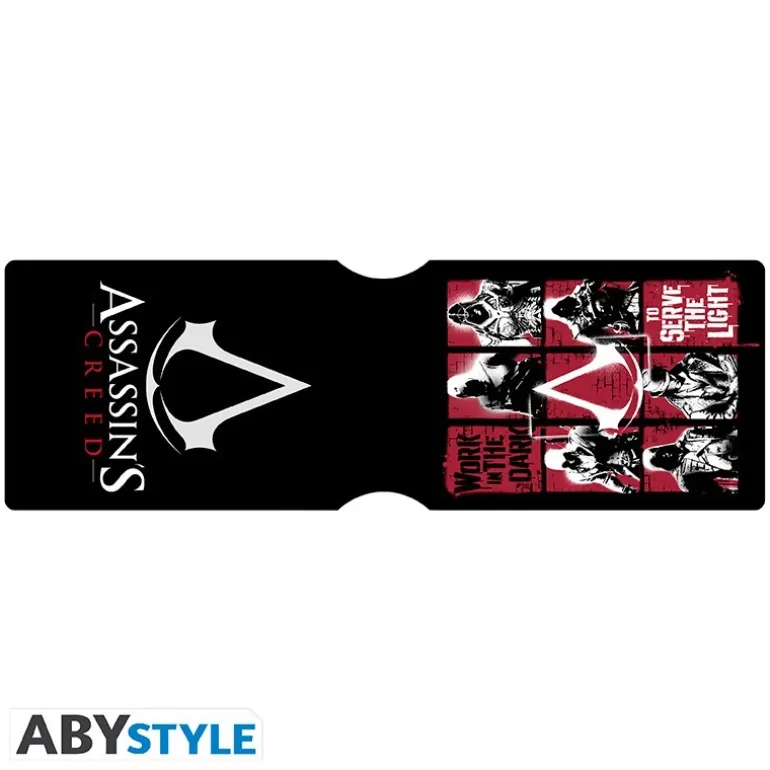 Este tarjetero de Assassin’s Creed es el complemento perfecto para cualquier fan de la célebre saga de videojuegos. Presenta un diseño estilizado en color negro con el icónico logotipo de Assassin’s Creed en un elegante tono blanco, acompañado por una llamativa cuadrícula de imágenes de varios asesinos de la serie en tonos rojos y blancos.