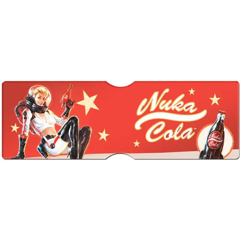 Se trata de una cartera tarjetero realmente práctica, ideal para llevar tus tarjetas y carnets, fabricada en piel sintética sin la utilización de piezas o componentes de origen animal y con un tamaño aproximado de 21 x 7 cm. Pero sobre todo no te pierdas su fantástico diseño, con la Nuke Cola.