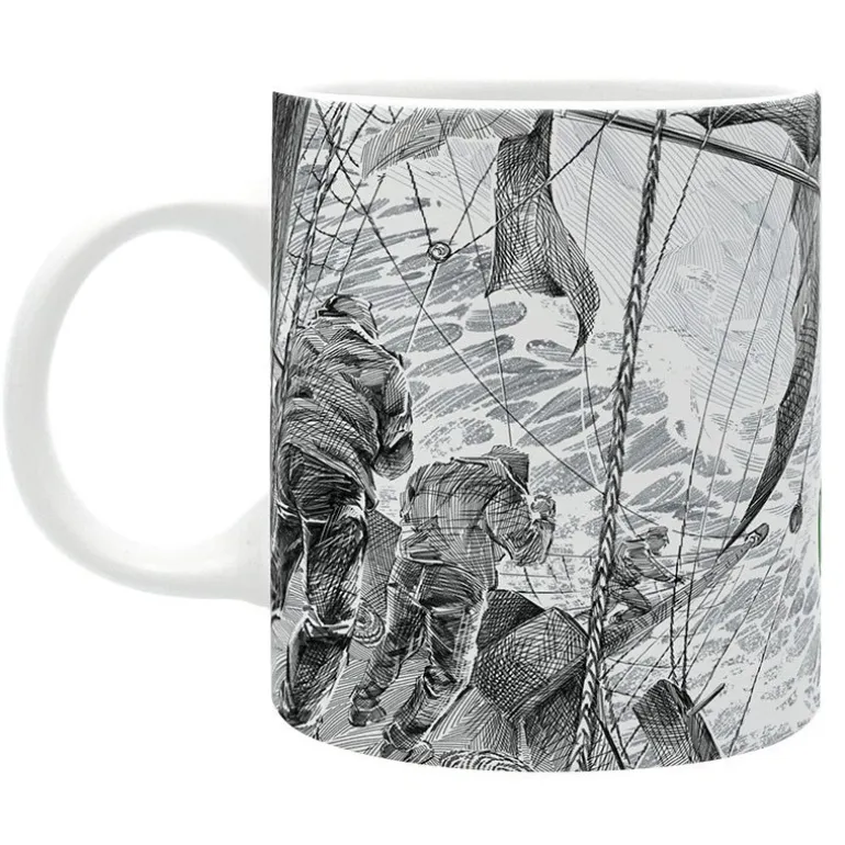 Es una original taza oficial con un diseño genial, protagonizado por un detallado dibujo, en el que aparecen un grupo de marineros que han tenido el infortunio de toparse con este impresionante criatura con aspecto de calamar gigante, que emerge del fondo del mar para causar un auténtico terror en cualquiera que se lo encuentre.