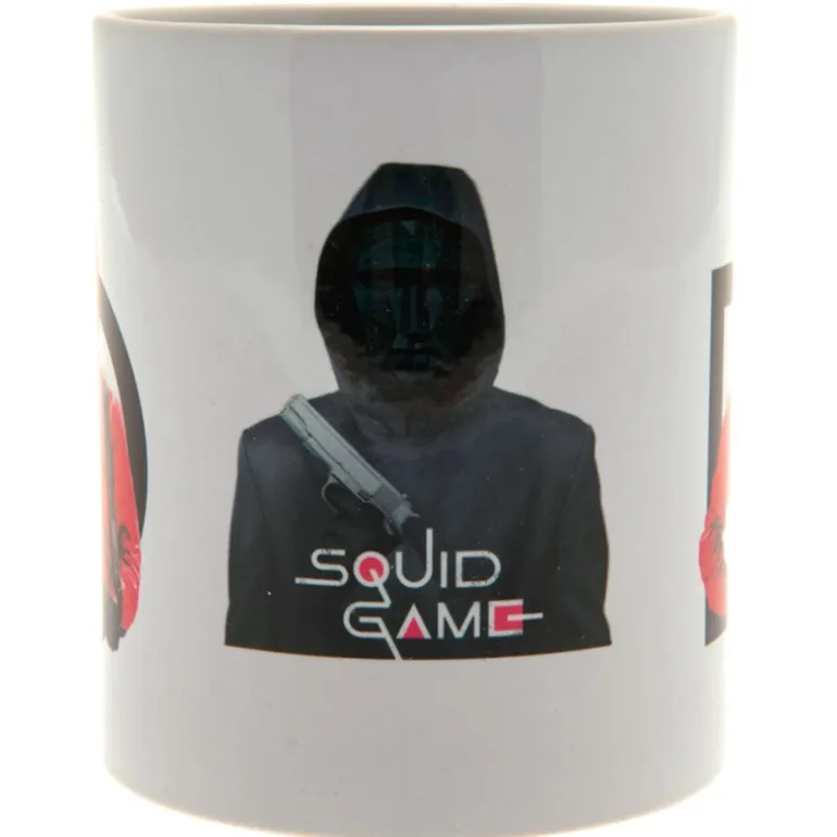 Es una taza oficial cuyo diseño está protagonizado por esos misteriosos soldados que se encargan de poner orden en este juego macabro y su jefe, que lleva esa máscara geométrica tan característica. Y también aparece el logo oficial de Squid Game, esta serie de Netflix que prácticamente todo el mundo ha visto. Se recomienda no meterla al lavavajillas o microondas para que se mantenga siempre en perfectas condiciones.