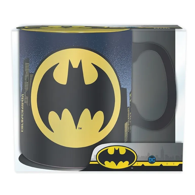 Una elegante taza fabricada en cerámica y de tamaño grande, con 460 ml de capacidad, protagonizada por uno de los héroes fundamentales del universo DC: Batman. Una maravilla de taza tanto por la calidad del material y acabados como por su cuidado diseño.