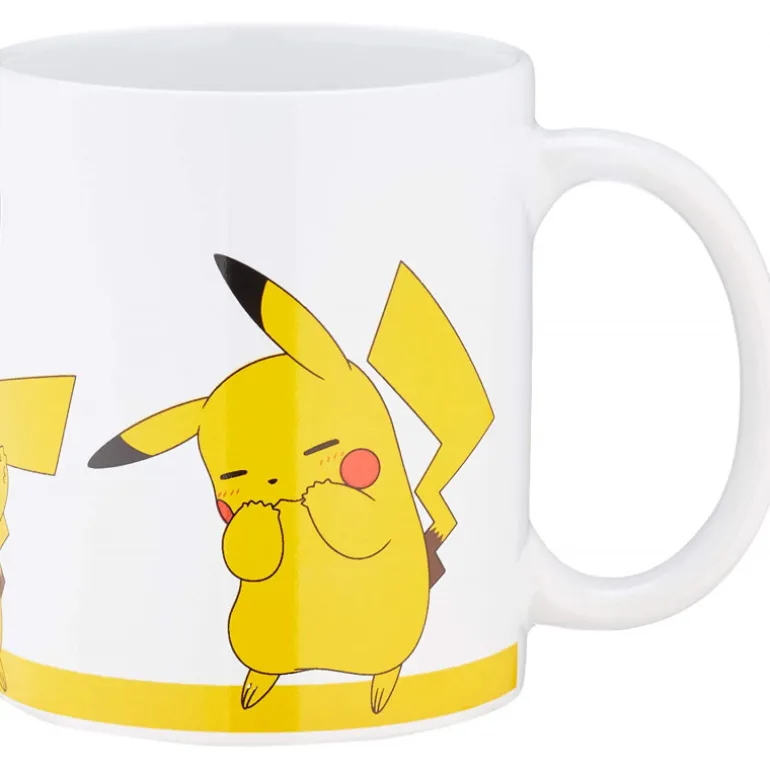 Se trata de una taza con un fantástico diseño, protagonizado por nuestro querido Pikachu, una de las criaturas más icónicas y adorables del mítico videojuego de Nintendo, Pokemon. Y por supuesto aquí le vemos tan risueño como casi siempre, con sus coloretes rojos y en unas poses muy graciosas, para que tus desayunos tengan el toque de alegría y energía que te hacen empezar bien el día.