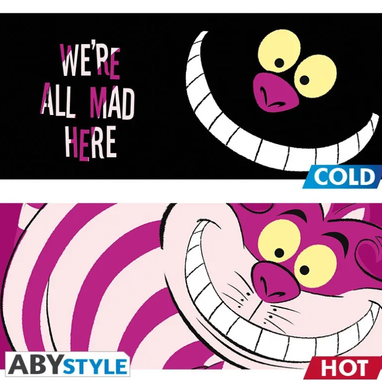 Una enorme y colorida taza de cerámica inspirada en uno de los gatos más famosos de la historia, el gran Gato Cheshire de Alicia en el País de las Maravillas, que además cuenta con capacidad sensitiva al calor, lo que le hace cambiar su diseño con la temperatura.