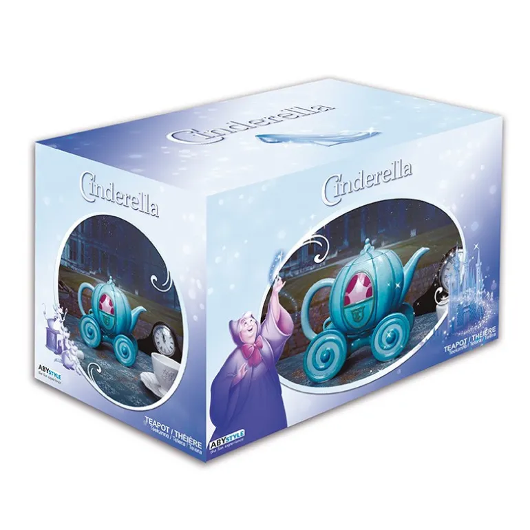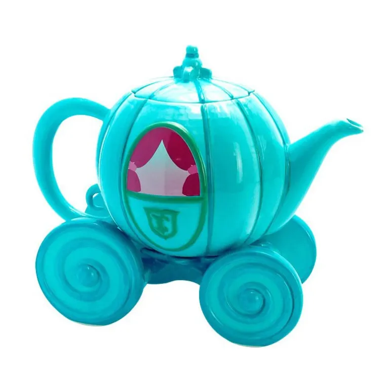 Y es que esta tetera tiene la forma de esa inolvidable carroza que Cenicienta usa para acudir al baile de gala en Palacio, y que es fruto de la magia del Hada Madrina, que la convierte en carroza a partir de una calabaza. Además de su utilidad, con nada menos que 850 ml de capacidad, la combinación de colores y su diseño hacen de este set una preciosidad que cualquiera querría tener en su casa.
