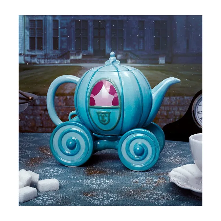 Una espectacular tetera de Cenicienta, fabricada en cerámica de la mejor calidad, que además de por su fantástico diseño, destaca tanto por la calidad del material como los acabados y la pintura.