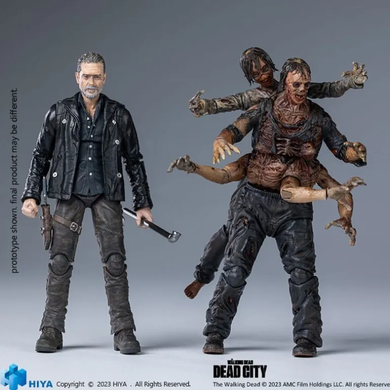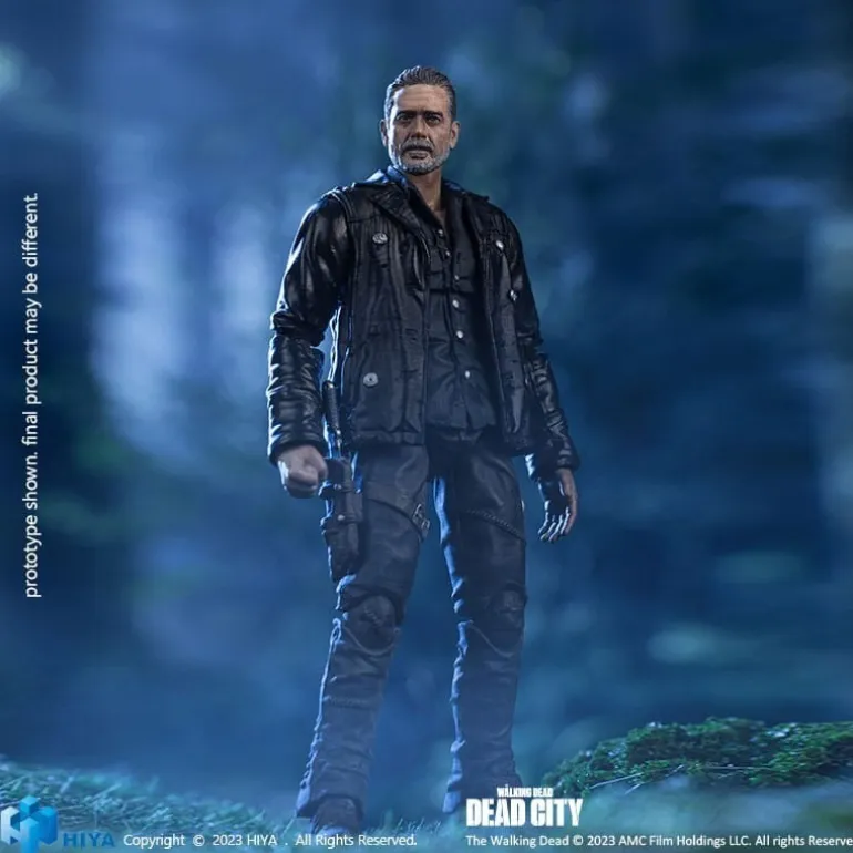 Esta impresionante figura articulada de Negan mide aproximadamente 11 cm y forma parte de la línea «Exquisite Mini». Fabricada por Hiya Toys, esta figura es perfecta para los fans de The Walking Dead. Detalladamente esculpida, muestra a Negan con su clásica chaqueta de cuero y su famosa arma. Incluye accesorios intercambiables y una base detallada que evoluciona con el tema apocalíptico de la serie. Un producto con licencia oficial ideal para coleccionistas o como un regalo único.