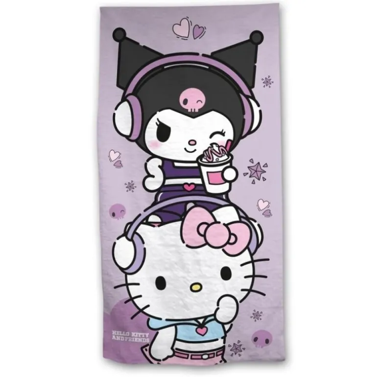 Descubre la toalla de microfibra Hello Kitty y Kuromi, una pieza imprescindible para los amantes de estos entrañables personajes. Con unas medidas de 70x140cm, esta toalla ofrece amplitud y comodidad, ideal para salir de la ducha o llevar a la piscina. Su diseño encantador presenta a la dulce Hello Kitty y la tomboy Kuromi sobre un fondo lila suave, adornado con corazones y estrellas, aportando un toque divertido y moderno.