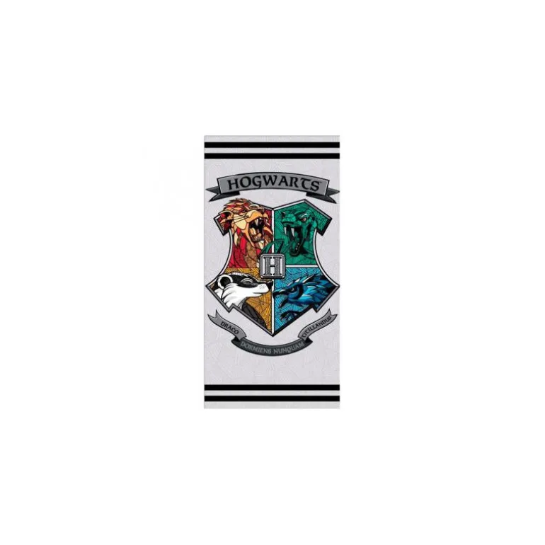 Es una enorme toalla de microfibra con un dibujo del escudo de Hogwarts. Es una toalla de una calidad extraordinaria tanto en materiales como en acabados, está realizada en 100% poliester. Y está llena de color, así que seguro que la encuentras de un vistazo en la playa. Con un tamaño de 70 x 140 cm.
