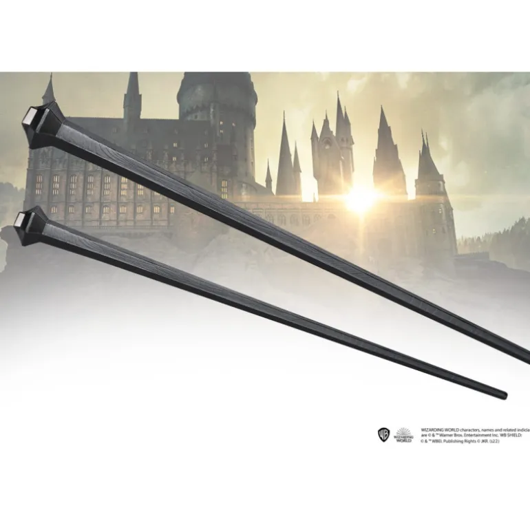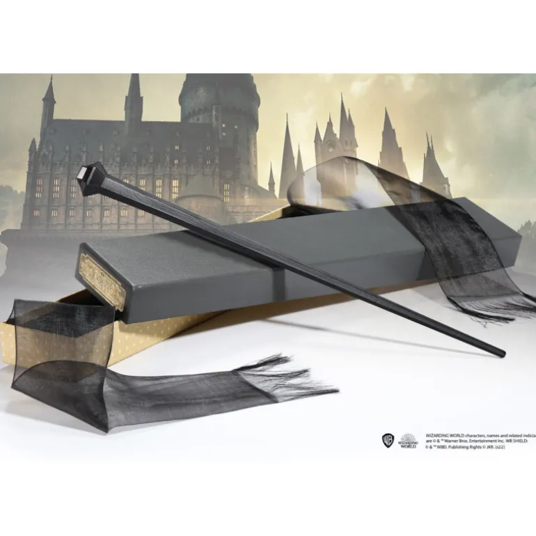 Confeccionada con resina de alta calidad, esta varita ha sido meticulosamente pintada a mano, brindándole un acabado detallado y realista. Con una longitud aproximada de 35,5 cm, esta pieza es una réplica fiel del diseño original.