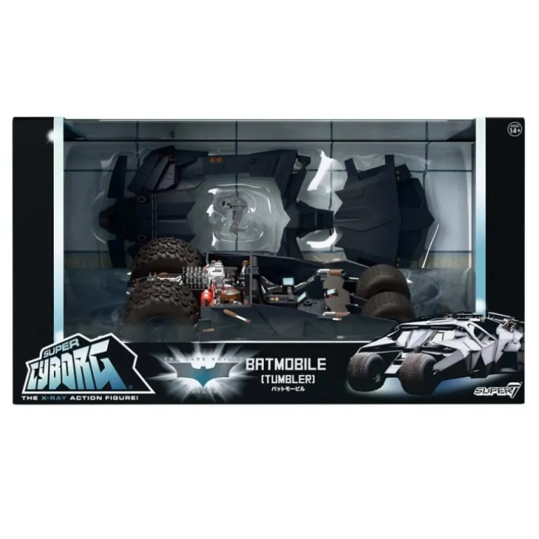 El Tumbler, conocido por su aspecto robusto y futurista, cuenta con paneles extraíbles y una estructura meticulosamente detallada que refleja fielmente su contraparte del cine. Fabricado por Super7 bajo licencia oficial de DC Comics, es un artículo imprescindible para los fans de Batman y coleccionistas de juguetes temáticos.