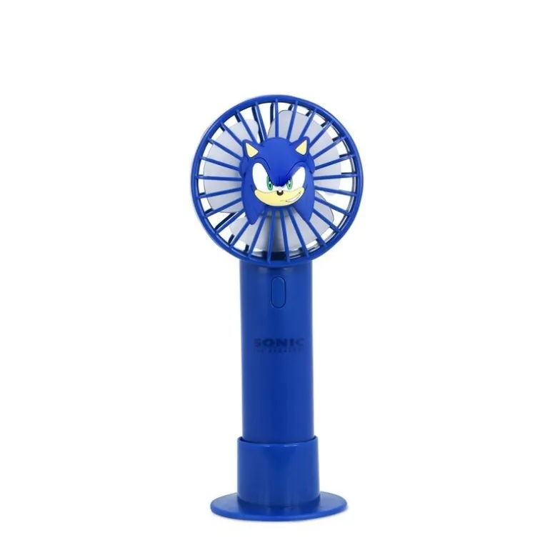 El diseño cuenta con el icónico rostro de Sonic en el centro de la rejilla, añadiendo un toque único para los apasionados del personaje. Su estructura es compacta y fácil de llevar, ideal para mantenerse fresco en cualquier lugar. Además, su funcionamiento silencioso y eficiente lo convierte en un compañero perfecto para cualquier situación.