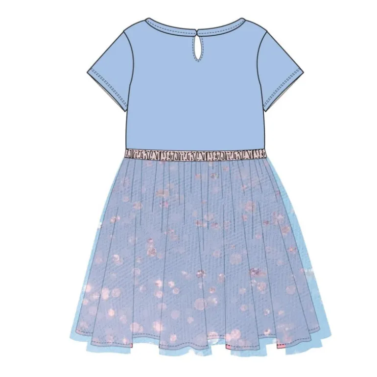 El diseño de manga corta y cuello redondo es perfecto para los días cálidos, mientras que la cintura elástica proporciona un ajuste cómodo y seguro para peques de 3 a 7 años. La falda de tul con detalles brillantes añade un toque especial que encantará a las pequeñas.