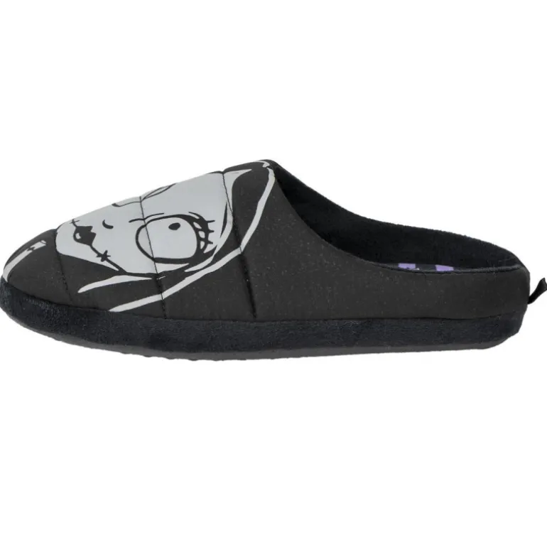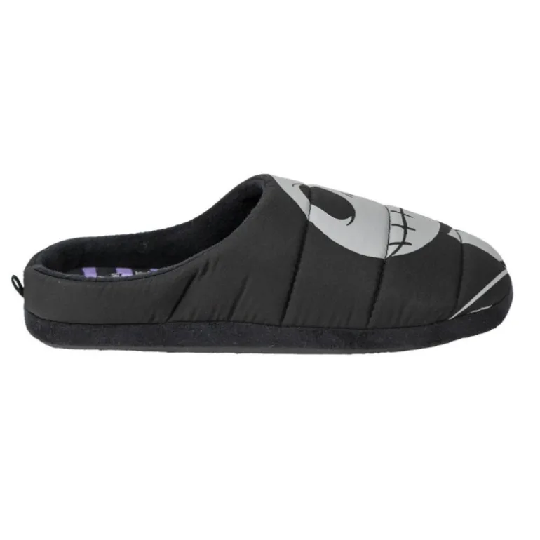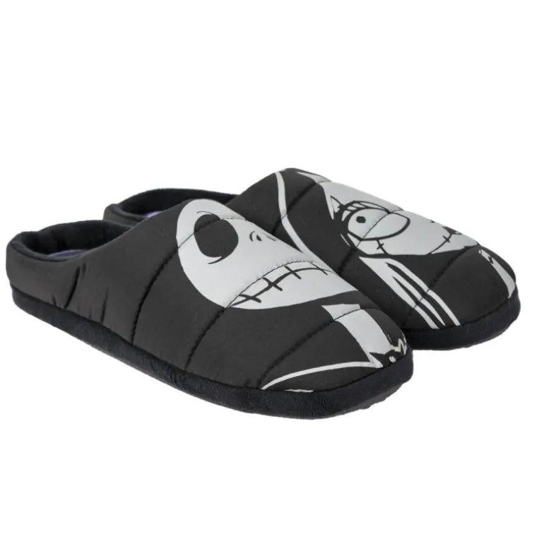 Las zapatillas de casa abiertas Jack y Sally son un producto de alta calidad que no puede faltar en tu hogar. Con un diseño en blanco sobre negro y la cara de Jack y Sally en cada una de ellas, estos calzados están basados en la popular película de Tim Burton, Pesadilla antes de Navidad. Fabricadas en polyester, estas zapatillas son perfectas para mantener tus pies calentitos y cómodos en casa.