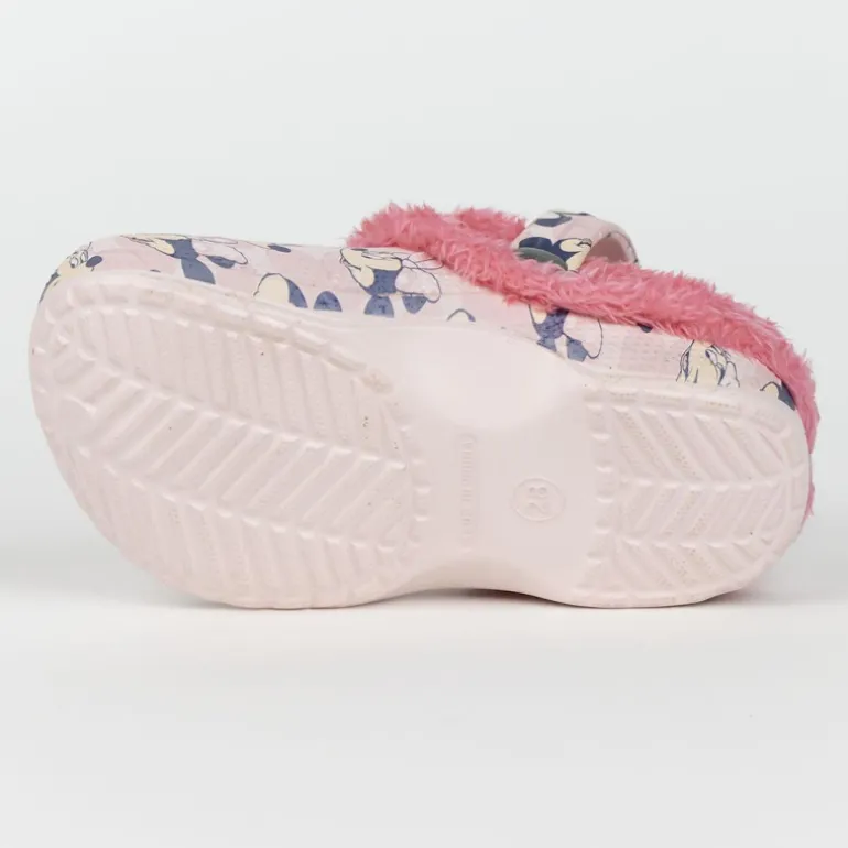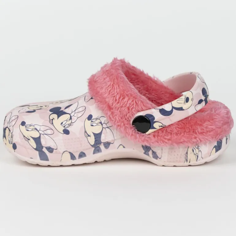 Descubre el encantador diseño de las zapatillas de casa zueco borreguillo inspiradas en Minnie. Estas zapatillas presentan un alegre estampado en tonos rosas y crema con la imagen icónica de Minnie Mouse repetida en todo el calzado. El borde está adornado con un suave forro de borreguillo en un vibrante color rosa, asegurando calidez y comodidad en cada paso.