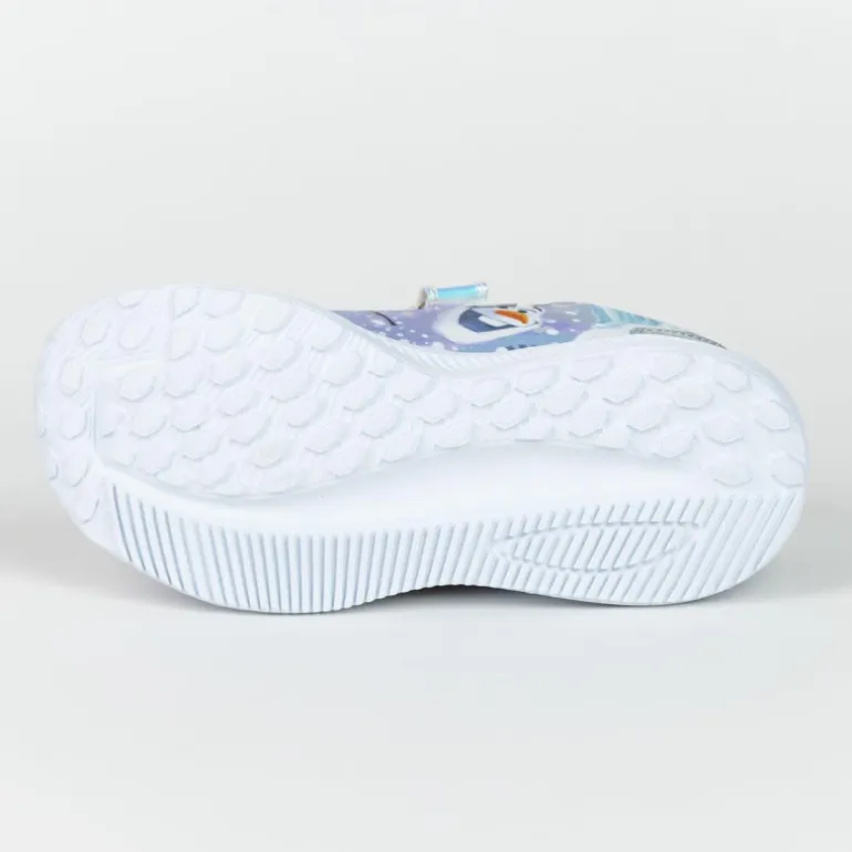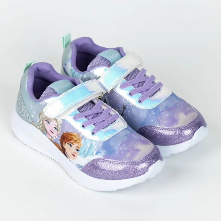 Estas encantadoras zapatillas deportivas de Frozen son el complemento perfecto para los pequeños admiradores de este mundo mágico. Presentan un diseño vibrante con los personajes favoritos del reino de hielo en tonos suaves de lila, azul y plateado. La parte superior está decorada con imágenes de personajes, creando un atractivo visual irresistible para cualquier niño.