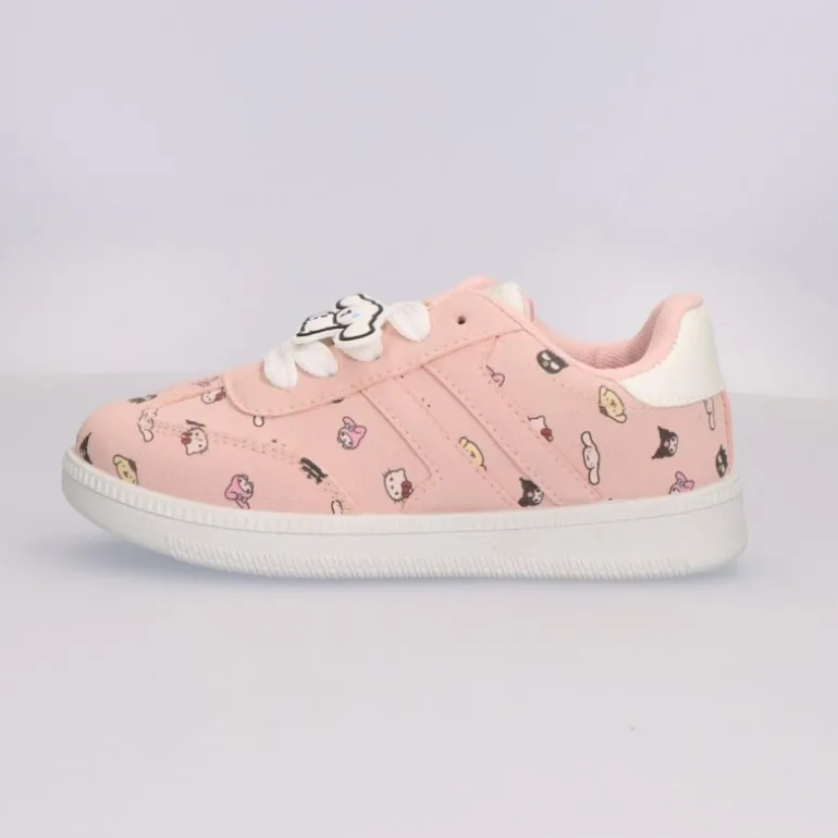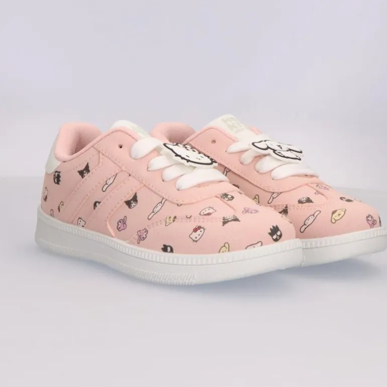 Estas encantadoras zapatillas deportivas de Hello Kitty son perfectas para los pequeños fans de este icónico personaje. Con un diseño en color rosa claro, presentan un estampado completo de Hello Kitty y otros personajes de Sanrio que aportan un toque divertido y alegre. Fabricadas en PU, poliéster y PVC, estas zapatillas combinan estilo y comodidad.