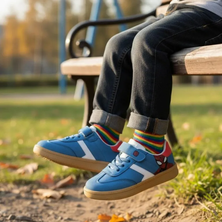 La suela de PVC proporciona un agarre excelente, ideal para las aventuras diarias de los pequeños. Además, cuentan con un cierre de velcro y cordones elásticos que facilitan el calzado, asegurando un ajuste perfecto. Disponibles en tallas que van desde T028-T035, perfectas para pequeños fans del superhéroe.