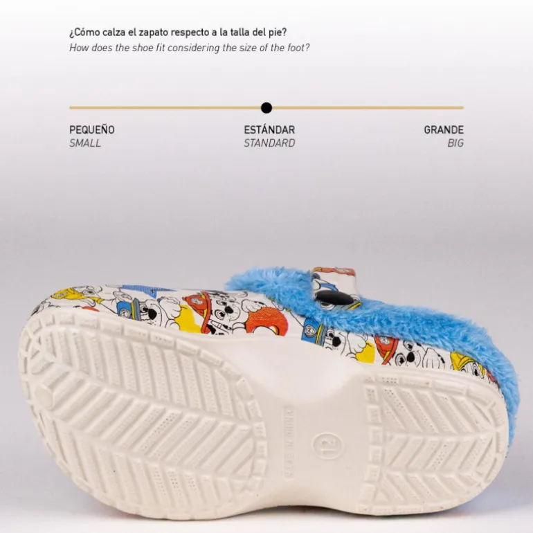 Estos zuecos con borreguillo de Patrulla Canina , son un producto de alta calidad destinado a brindar una experiencia de uso cómoda y agradable. Su composición de Polyester y EVA se ha seleccionado cuidadosamente para garantizar durabilidad y confort a nuestros pequeños clientes. Hay en tallas desde la 26 a la 33.